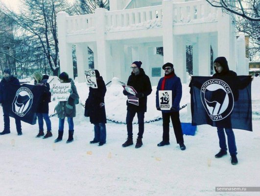 В отделе № 1 Мурманска составляют протокол на активистку Татьяну Кульбакину, одну из десяти задержанных на акции памяти Станислава Маркелова и Анастасии Бабуровой. Она сообщила ОВД-Инфо, что полиция посчитала ее организатором и составляет протокол по ч.1 ст.20.2 КоАП (нарушение организатором публичного мероприятия установленного порядка организации либо проведения собрания, митинга, демонстрации, шествия или пикетирования). Остальным задержанным обещано, что они только напишут объяснения.