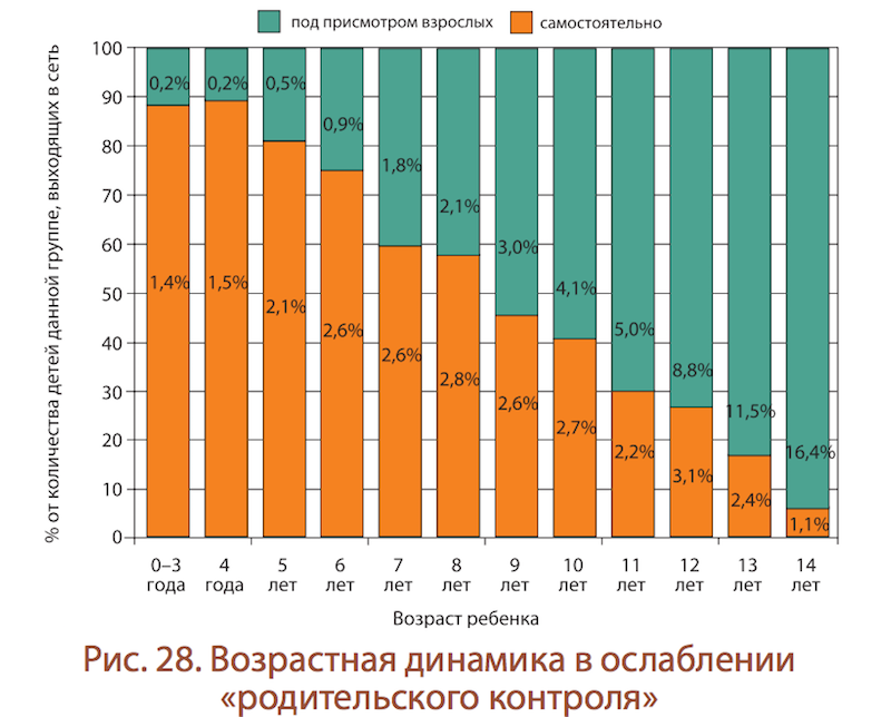 Причём, в нашей стране один из самых высоких показателей "самостоятельного" выхода в сеть детей...