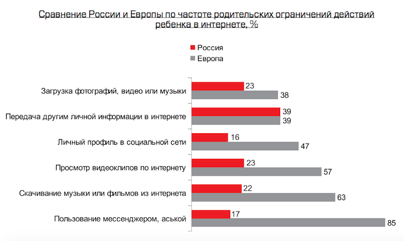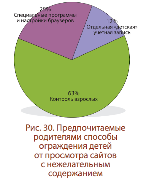 Опросил. Детской учётки нет ни у кого (сам не делаю, хлопотно); программными ограничениями пользуются 5 родителей из 28. Остальные, видимо, используют "родительский контроль". Есть, конечно, родители-экстремисты, вроде меня, лишившие ребёнка телевизора на 100%, а интернет ограничивающие часом в день (не считая учебных материалов)... Но у большинства, я так понял, контроль уже прошёл высшую точку...) В классе даже голоса раздавались, а что, мол, их так строго ограничивать... Показал сравнительную статистику нас и Европы.