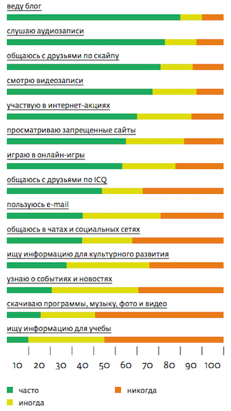 Открытием стал для меня вопрос "Что дети делают в интернете"? Вот такая интересная табличка.