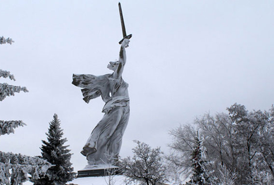 Мемориальный ансамбль героям Сталинградской битвы был сооружен на Мамаевом кургане в 1958–1967 годах по проекту Евгения Вучетича, 85-метровая бетонная скульптура «Родина-мать зовет!» весом 8000 тонн расположена в центре комплекса на самой вершине кургана. Это одна из самых высоких статуй мира и самая высокая статуя в России и Европе.