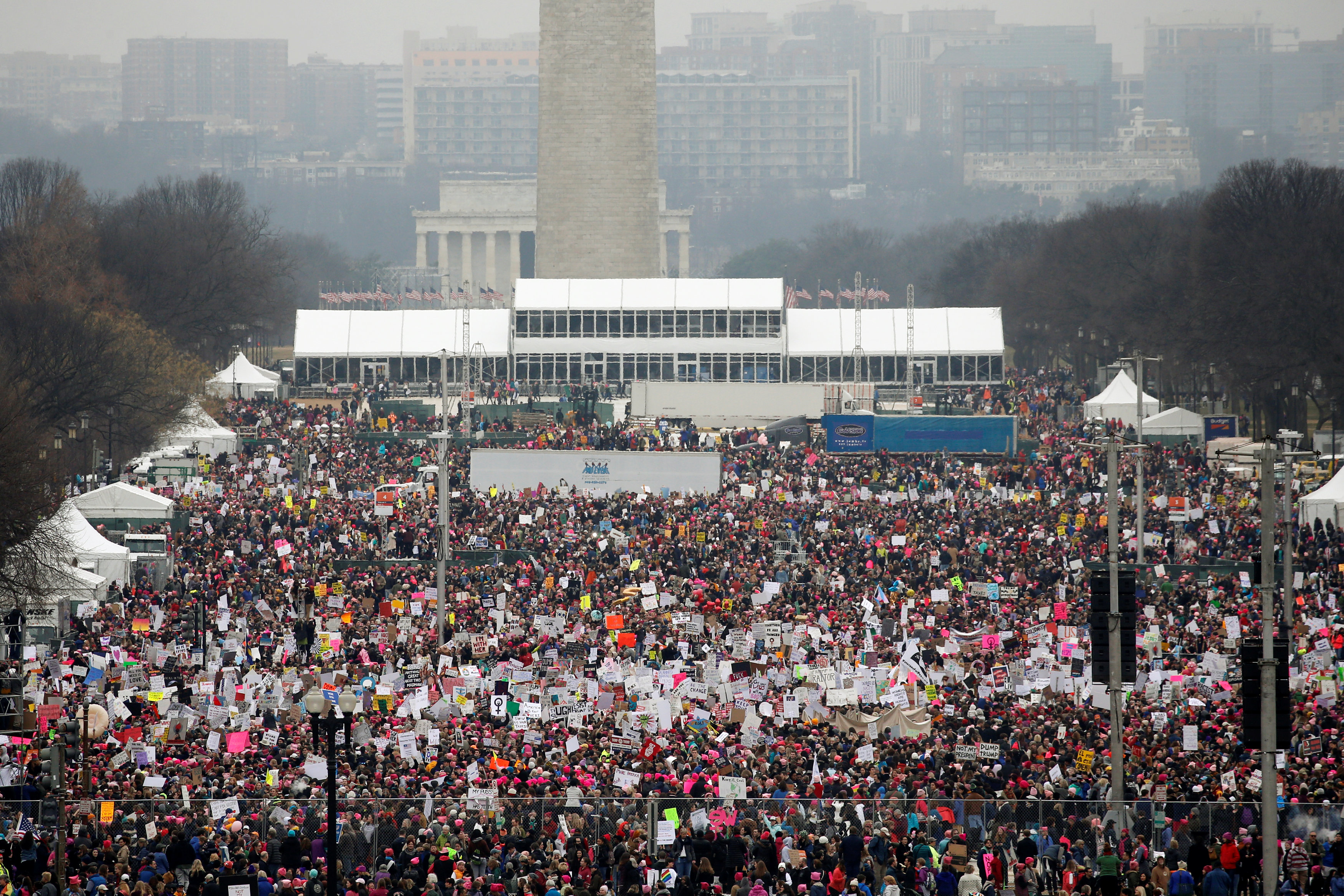 Свежие сверху 21:55 21.1.2017Судя по этой фотографии, число участников марша женщин, собравшихся на вашингтонском молле – гигантском поле в центра Вашингтона, заметно превышает число тех, кто приходил сюда днем раньше, чтобы наблюдать за инаугурацией Дональда Трампа