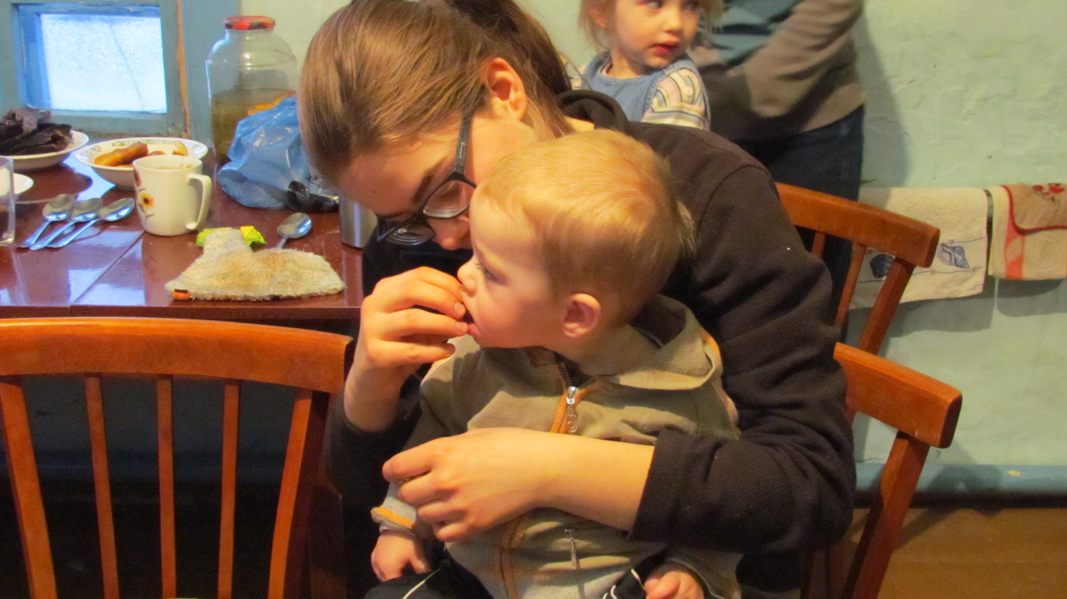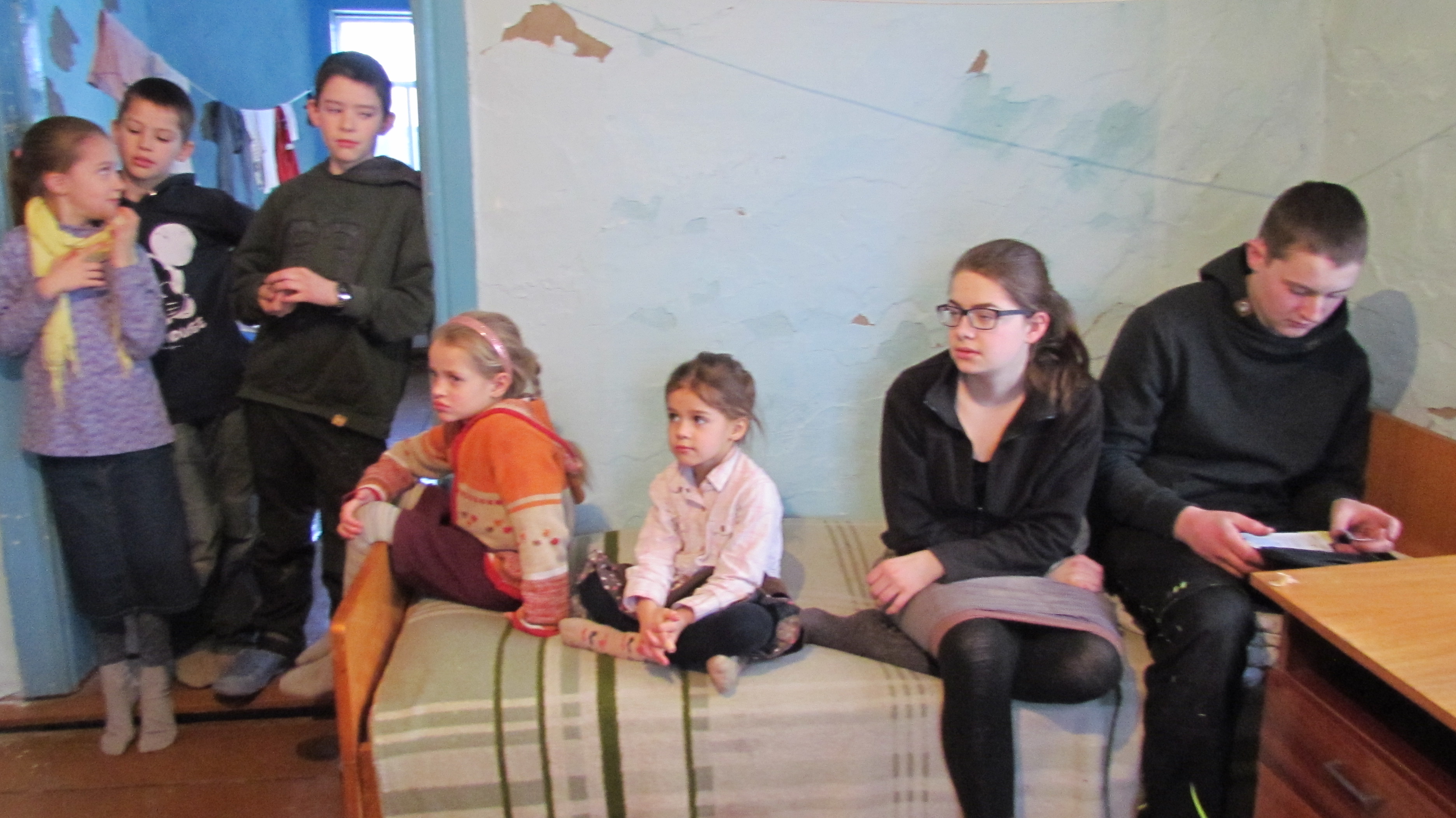 Дети, услышав отцовское возмущение, подтягиваются поближе. Просыпается маленький Дан-Илья. Когда дверь открывается настежь, чтобы впустить очередных гостей с мороза, его тут же подхватывает на руки кто-то из старших девочек.