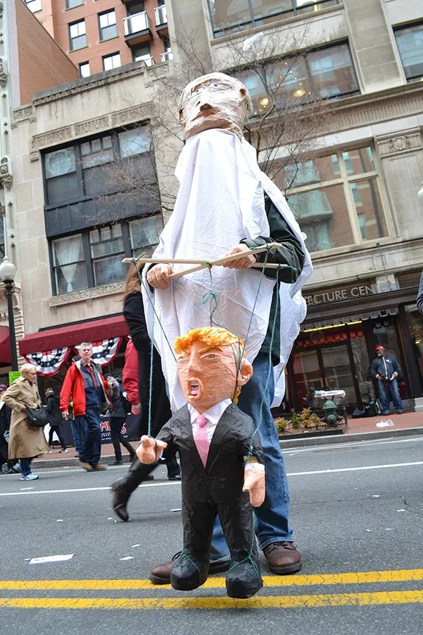 Протестующие очень много внимания уделяют России, много русских слов на плакатах, — они забавно переведены Google-переводчиком, много разговоров о Путине и Советском союзе. Слышно даже русскую речь — я встретил много русскоязычных людей в этот день. Русские пришли на акцию против Трампа? Это меня удивило. Люди боятся возможного сближения Трампа с Путиным, боятся превращения Америки в Советский союз или возвращения Холодной войны.
