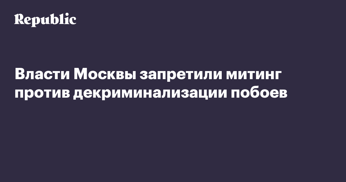 Власти Москвы не согласовали митинг против декриминализации побоев, который организаторы планировали провести на Болотной площади. Фотография официального ответа департамента региональной безопасности опубликована на странице мероприятия в фейсбуке.