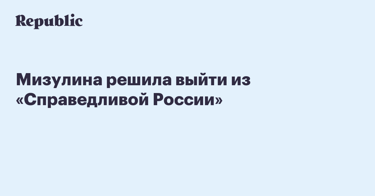 Как позже рассказал «Дождю» депутат Госдумы от «Справедливой России» Олег Шеин, Мизулина решила выйти из партии из-за расхождения в политических взглядах.