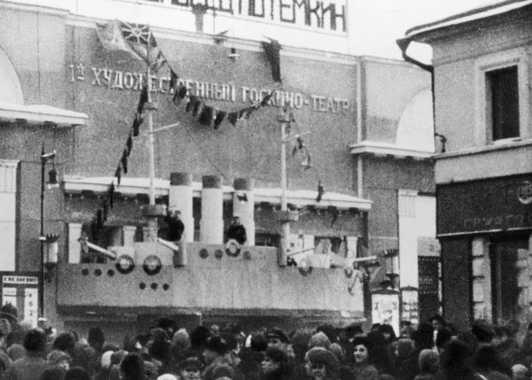 Фасад кинотеатра «Художественный», премьера фильма «Броненосец „Потемкин”», Москва, январь 1926