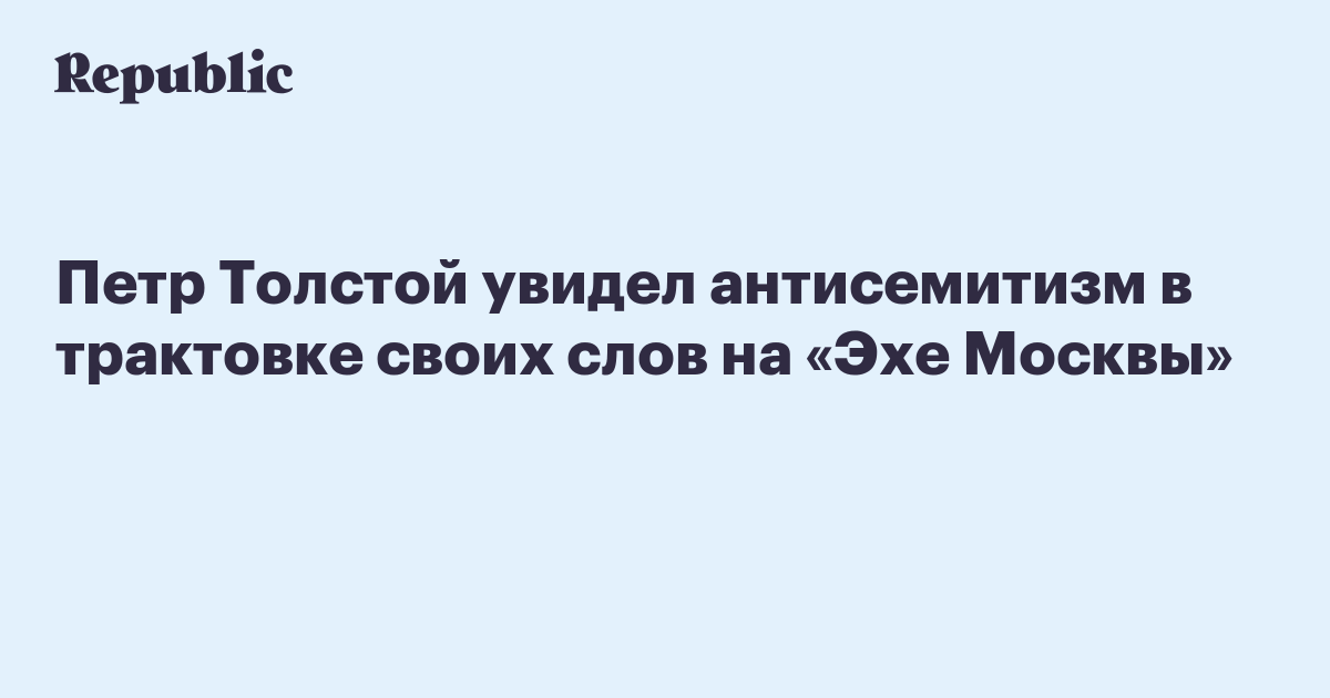 Петр Толстой увидел антисемитизм в трактовке своих слов на «Эхе Москвы»