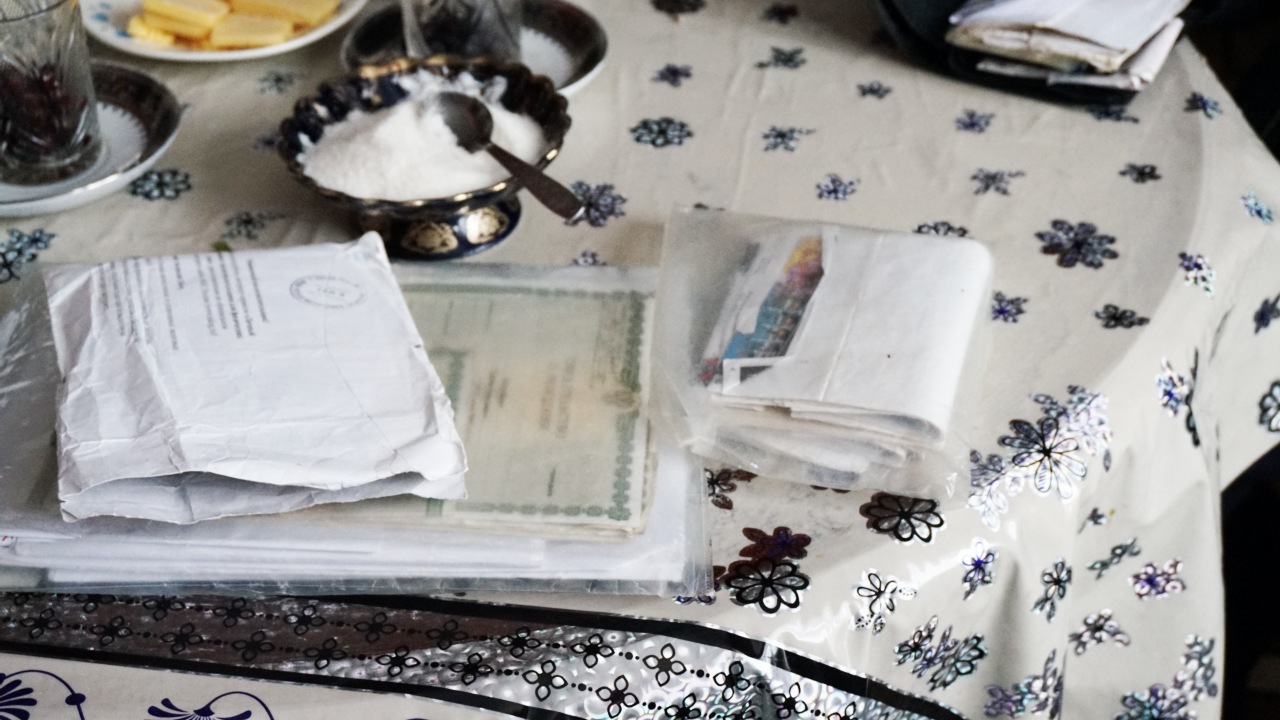 Женщина достает пачку документов. Там паспорта, страховые и медицинские полисы, свидетельства о рождении. Она открывает несколько паспортов и показывает их нам.
