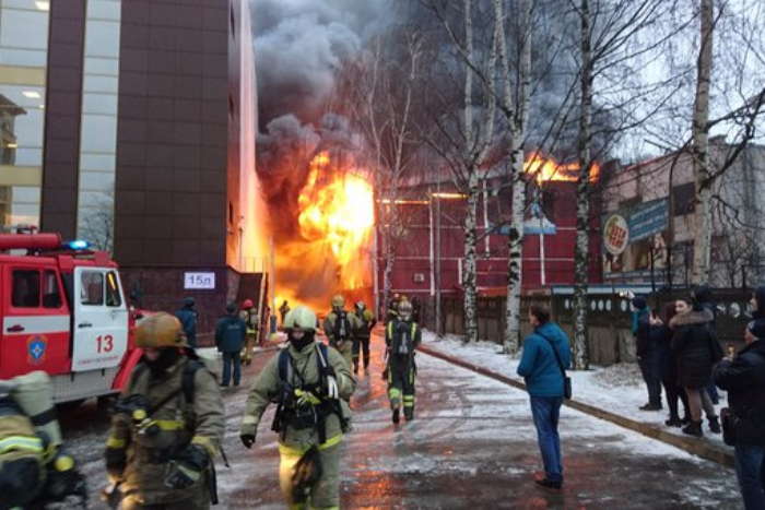 Пожар начался 26 января около четырех часов вечера. Его площадь составила 1 тысячу квадратных метров. Здание Rock Town сгорело почти полностью. В торговом центре «Аквилон» пострадала боковая стена.