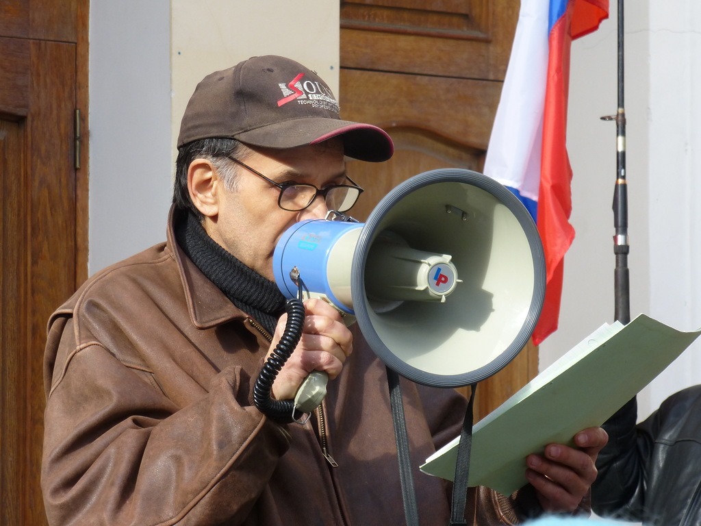 Слово общественной активистке Марине Забродской дали позже. А для начала заявитель митинга, ялтинский журналист Сергей Сардыко, озвучил тему собрания, пояснив, что этого требует "буржуазное законодательство, которое уже 26-й год действует в нашей замечательной стране СССР". Официально митингующие собрались выразить поддержку политике президента России. Видимо, местная администрация выдает разрешения на проведение массовых мероприятий только такой тематики. С этим вопросом разобрались быстро: гурзуфчане поддержали Путина поднятием рук. После этого перешли к главному.