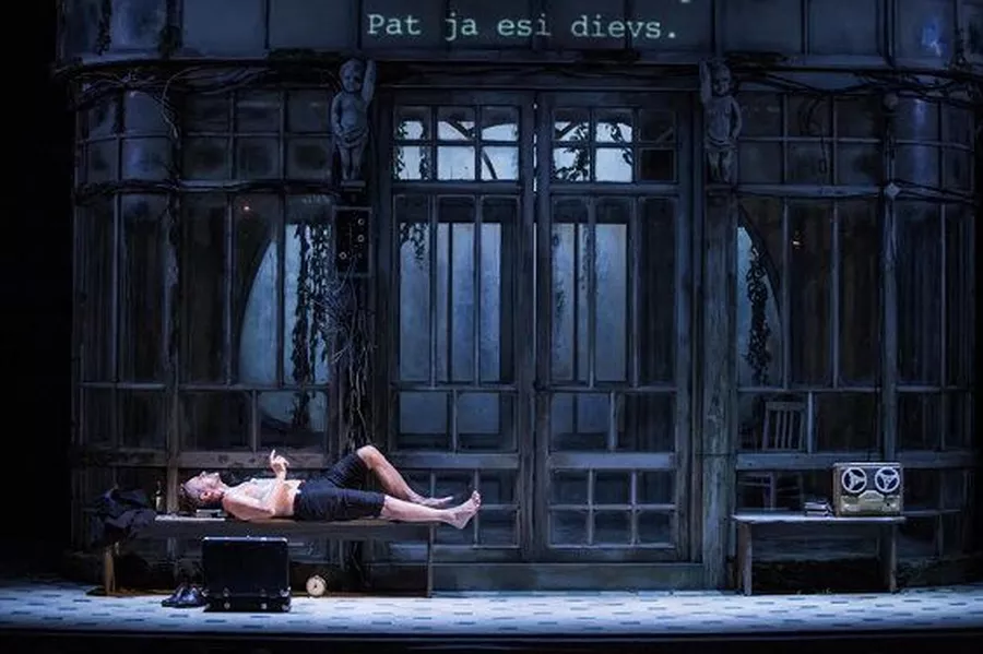 Кто его знает, что это за спектакль. Это и не традиционный театр впрямую, но и не какая-то «модерняга» — заумный авангард. Я на сцене один, больше никого нет. Построена большая декорация, которую соорудила прекрасная художница театра Херманиса — декоратор Кристине Юрьяне. Они с режиссером нашли оранжерею времен прекрасной эпохи — может быть, это 19-й век. Может, она Венская, но такая же могла стоять и в Летнем саду на Рижском взморье. И не только там. Декорация очень красивая. Немного похожа на старый петербургский лифт, какие бывали в старых домах. Стекляшка такая, или беседка, в которых оркестры играли в Городском саду. Когда холодало, они закрывались стеклом, из них делали оранжерею, зимний сад. Иосифу эта декорация понравилась бы — это я знаю точно. Остальное — не уверен. Вот в эту запущенную оранжерею из ниоткуда входит человек с чемоданчиком. Садится и потихоньку начинает читать. Пытается закурить, но, как часто случается, — нет спичек, и попросить не у кого, так как никого нет. Он начинает тихонечко — словно про себя, потом чуть погромче — вслух, читать какие-то строчки.