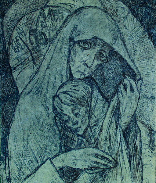 Елена Марттила. Ленинградская Мадонна. Гравюра на картоне. Январь 1942 года 3/3