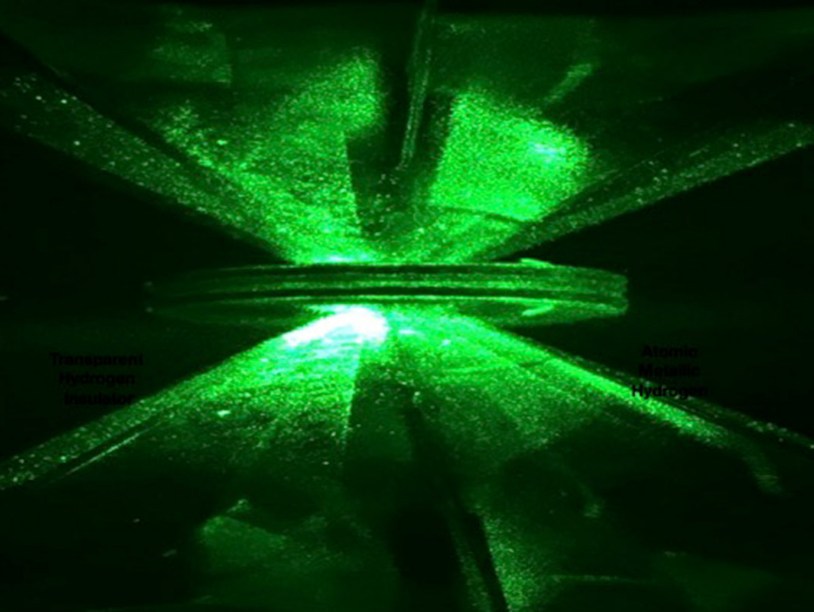 В новом исследовании Айзек Сильвера и Ранга Диас, как они сообщают, добились давления 495 ГПа в алмазных наковальнях. В этот момент им удалось зафиксировать при помощи инфракрасного лазера резкое возрастание отражательной способности образца, то есть он стал блестящим подобно металлу.