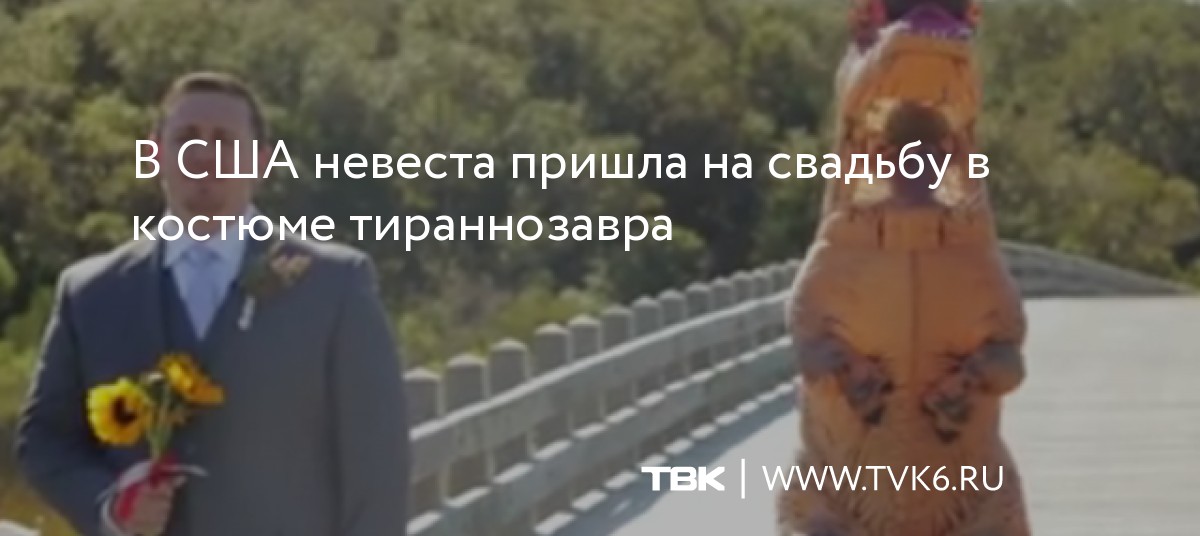 Дата28.01.2017АвторСкрытИсточникТВК-6Сохранённая копияInternet ArchiveOriginal MaterialShow translationВ США невеста пришла на свадьбу в костюме тираннозавра Видеозапись встречи возлюбленных перед бракосочетанием опубликовал на странице в Facebook фотограф ДжонаКларка 23 января. За 4 дня ролик просмотрели около 2,8 млн раз.