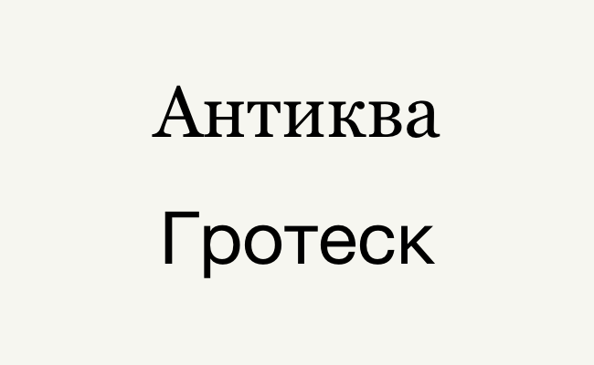 Коротко. Есть две основные группы шрифтов — антиквы и гротески. Антиквы — это шрифты с засечками, гротески — без засечек.