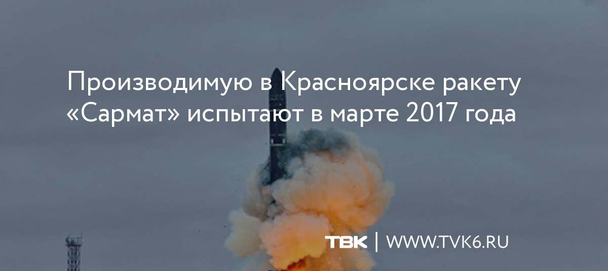 Производимую в Красноярске ракету «Сармат» испытают в марте 2017 года
