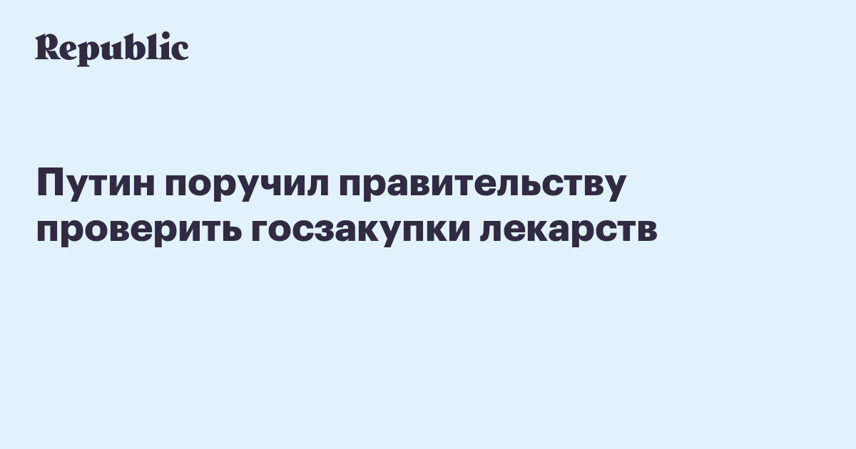 Путин поручил правительству проверить госзакупки лекарств