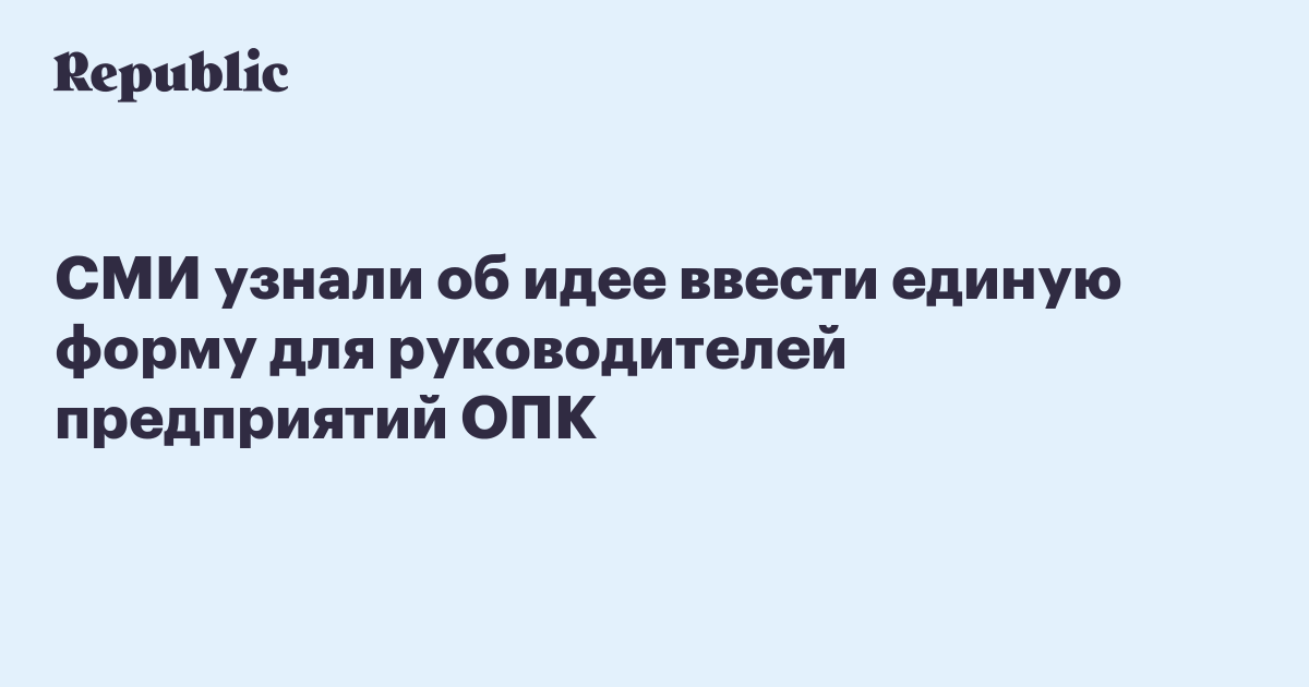 В Министерстве обороны РФ выступили с инициативой ввести единую форму одежды для руководителей предприятий оборонно-промышленного комплекса (ОПК). Об этом топ-менеджеры из сферы ОПК рассказали «Коммерсанту».