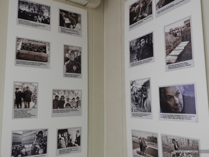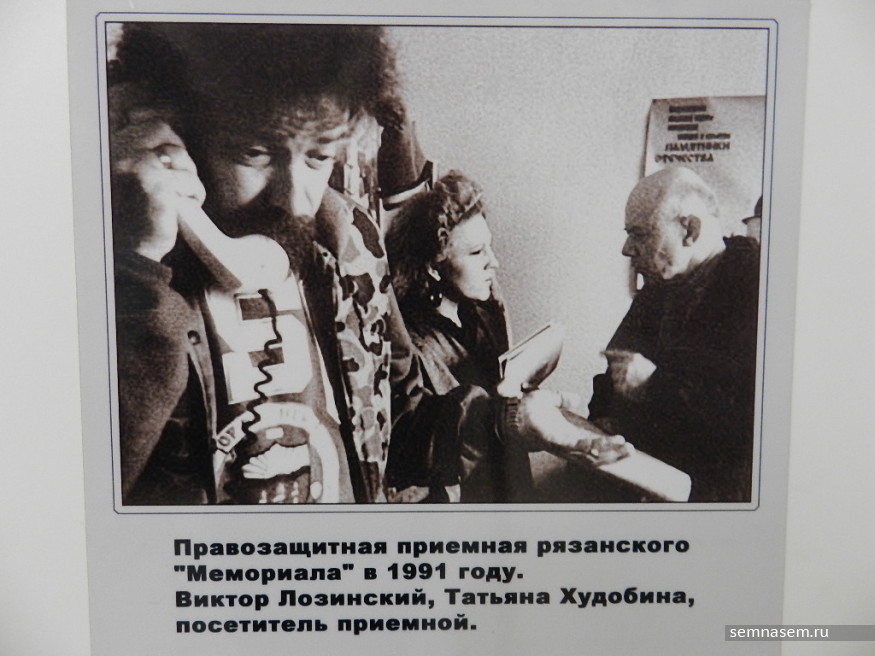 Советские плакаты — серьезные и уже кажущиеся наивными, черно-белые снимки с мероприятий, проведенных «Мемориалом» в конце прошлого века. И книги. Много книг. В том числе — изданных самим обществом, по материалам, над которыми кропотливая работа шла десятки лет. Это сведения о репрессиях и жертвах репрессий. Но в нашем разговоре мы не затрагиваем историко-просветительскую деятельность, речь пойдет о правозащитной деятельности организации.