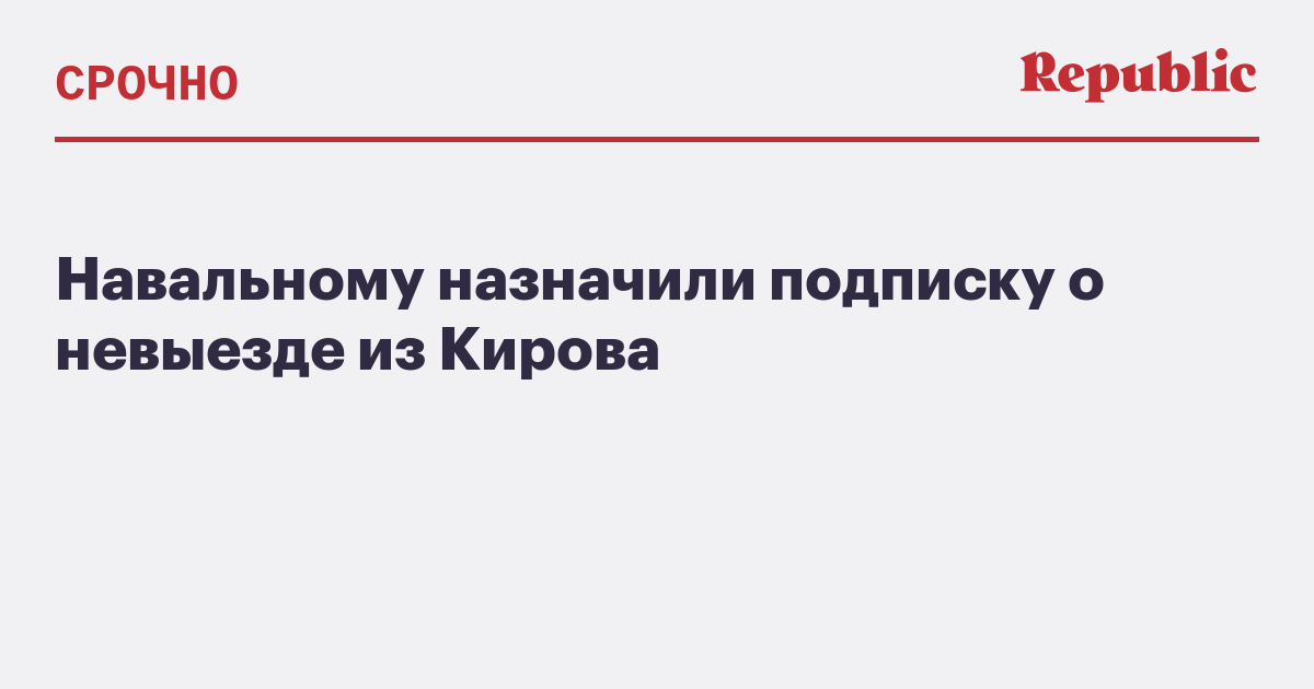 Ленинский районный суд Кирова назначил оппозиционеру Алексею Навальному и бизнесмену Петру Офицерову подписку о невыезде как меру пресечения по делу «Кировлеса». Об этом в твиттере сообщил директор Фонда борьбы с коррупцией (ФБК) Роман Рубанов.