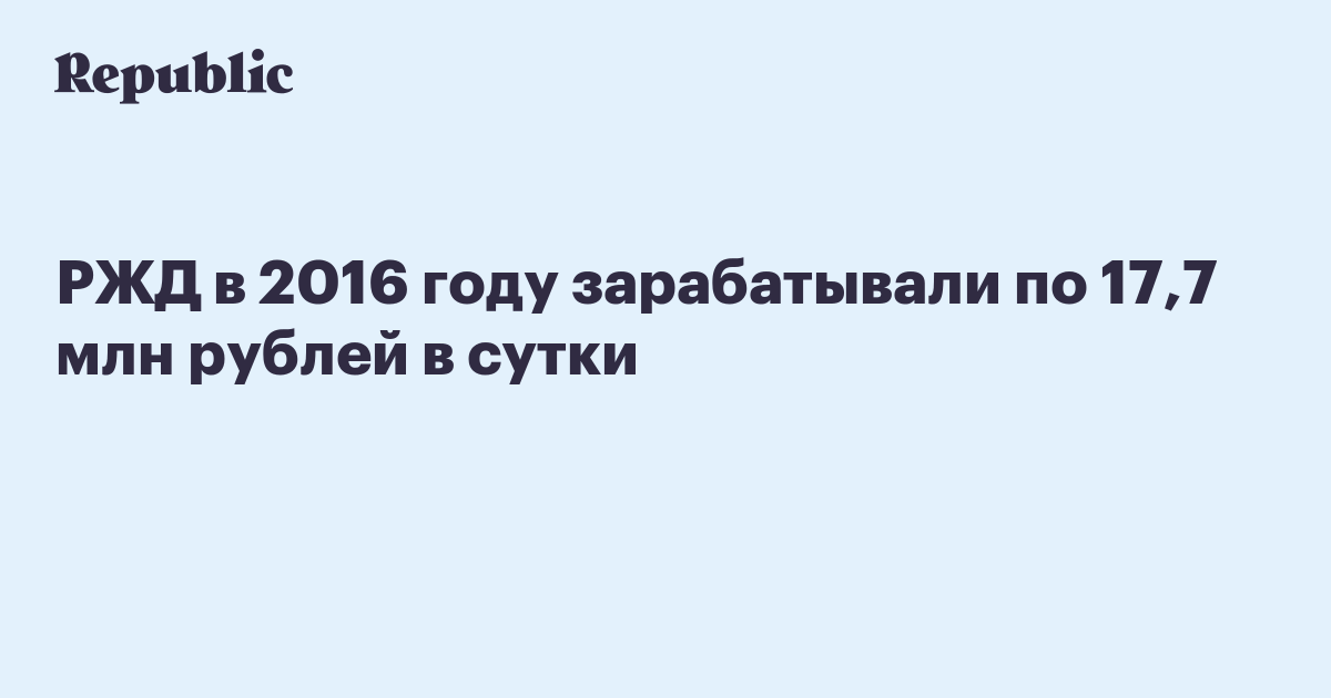 РЖД в 2016 году зарабатывали по 17,7 млн рублей в сутки