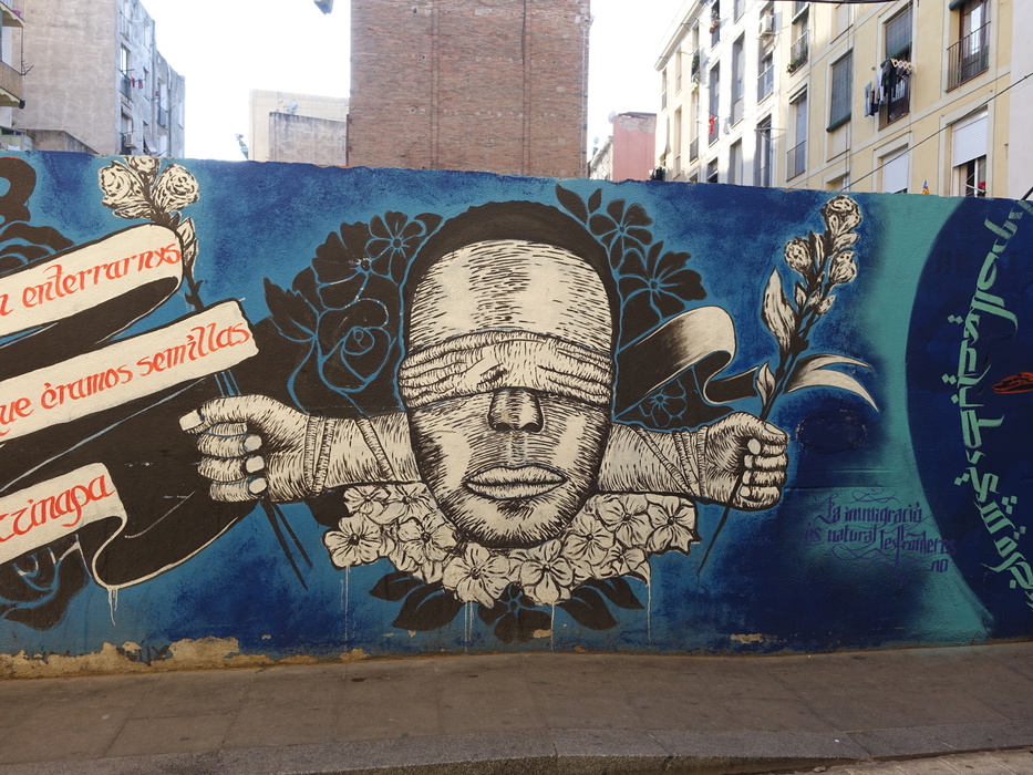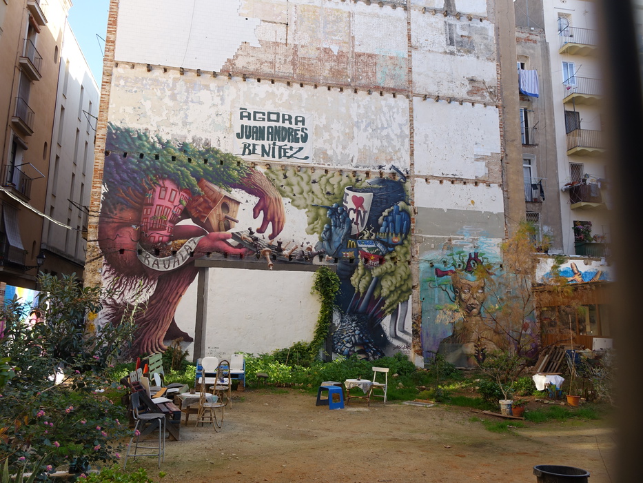 Сама по себе нелегальная монументальная уличная живопись – явление не новое. Интересны конкретные истории творческого сквоттирования стен и площадей. Сначала барселонцы устраивали демонстрации, потом нарисовали фреску, а потом они захватили землю. Почему горожане были вынуждены захватить землю? Почему власти бездействуют и не могут отобрать захваченную территорию обратно? Каждый каталонец охотно расскажет вам историю о преступлениях полиции района Раваль.