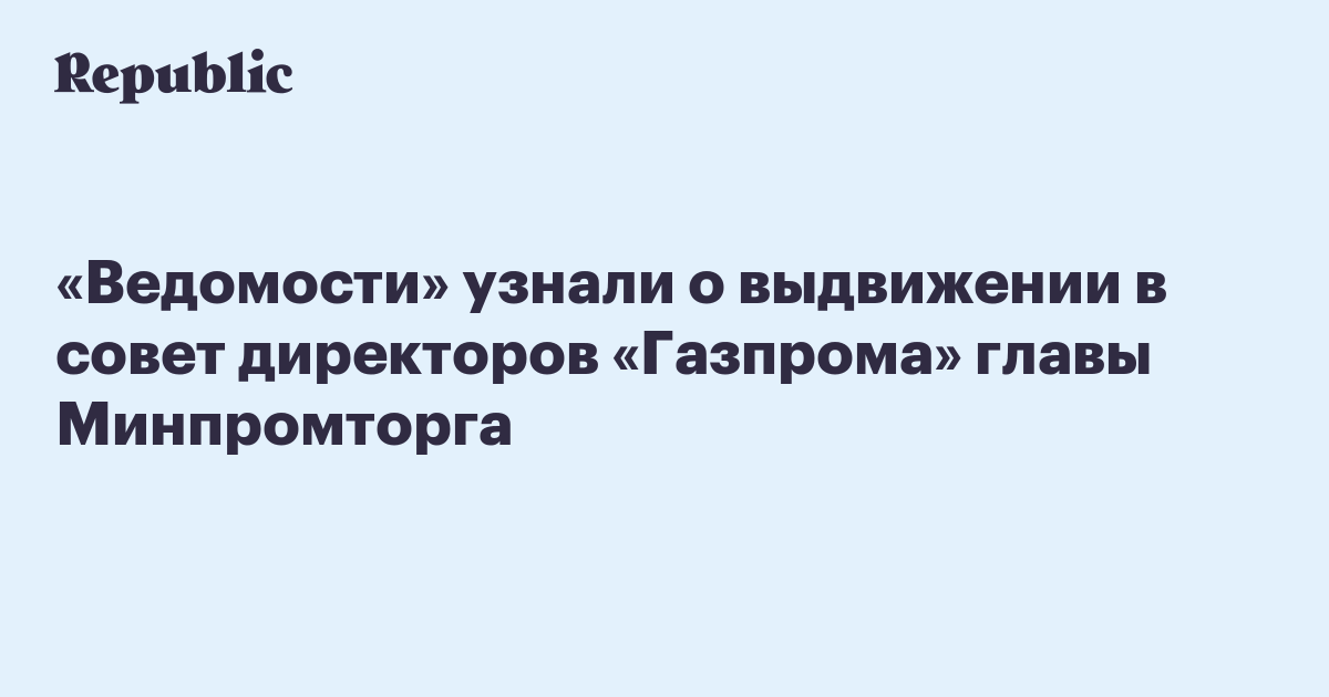 «Ведомости» узнали о выдвижении в совет директоров «Газпрома» главы Минпромторга