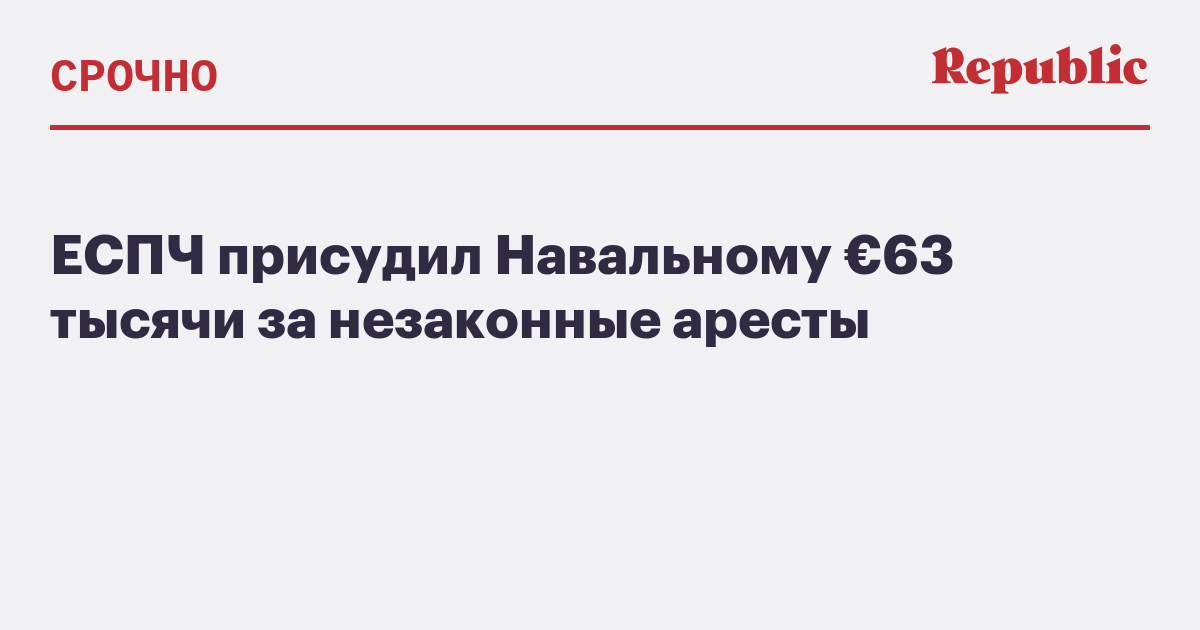 ЕСПЧ счел, что Навальный подвергался незаконному преследованию, и присудил ему компенсацию в размере €63 тысячи.