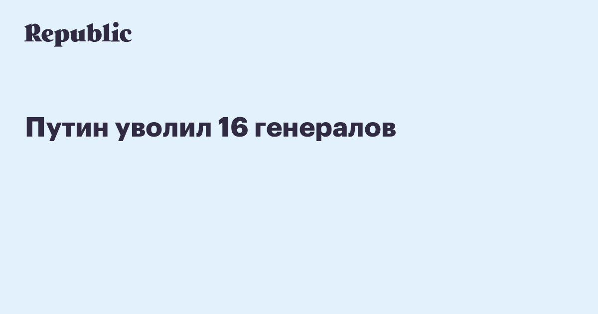 Президент РФ Владимир Путин уволил 16 генералов, которые занимали должности в МЧС, МВД, прокуратуре и Следственном комитете. Указ президента опубликован на официальном портале правовой информации.