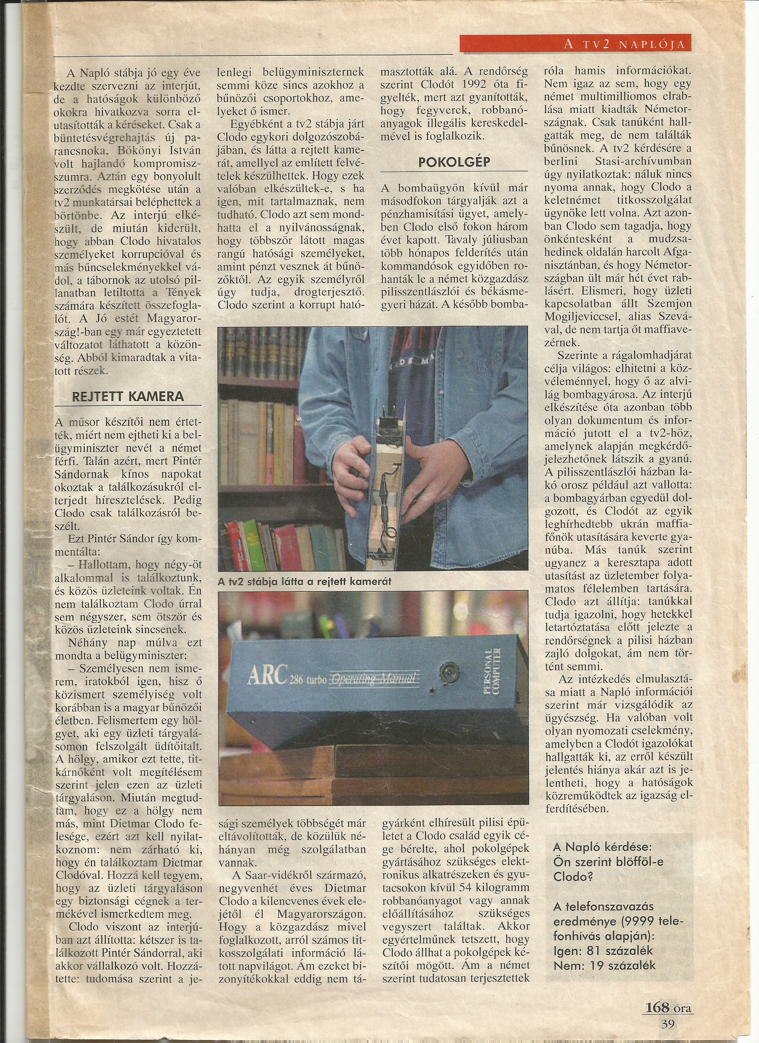 Фото той самой скрытой камеры, опубликованное в местной прессе в 1999 году