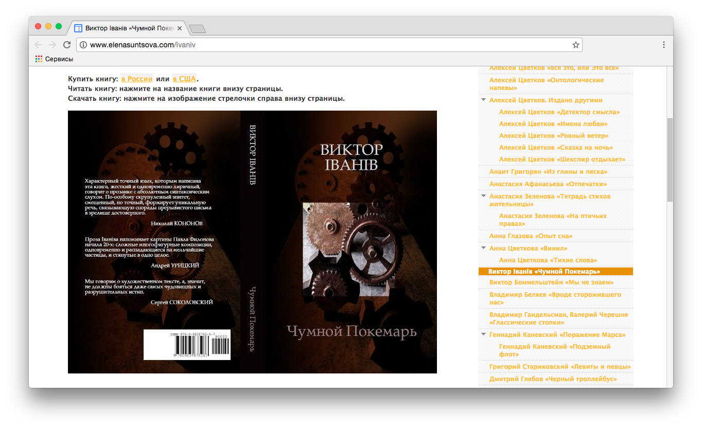 3. Большое событие: выходит собрание прозы Виктора Iванiва, продолжение темного, завораживающего «Чумного Покемаря». «Чумной Покемарь» — одна из тех книг, которые, по-моему, нужно, прочитать, чтобы понять, что такое — по-настоящему, без дураков — новая русская проза. Книгу «Конец Покемаря» Iванiв собрал незадолго до гибели. На сайте Post (non) fiction опубликован текстологический комментарий к изданию. Для читателя, с прозой Iванiва незнакомого, самое ценное здесь — ссылки на те тексты из книги, которые есть в Сети, в том числе в Живом Журнале автора.