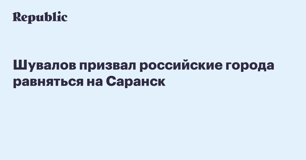 Первый вице-премьер Игорь Шувалов назвал столицу Мордовии Саранск примером хорошего благоустройства среди городов России. Об этом он заявил в ходе выступления в Кемерове на сессии о повышении качества среды моногородов, передает «Интерфакс».