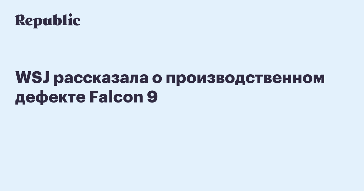 Окончательный отчет о причинах сентябрьской аварии Falcon 9 будет обнародован в течение нескольких недель, добавляет издание.