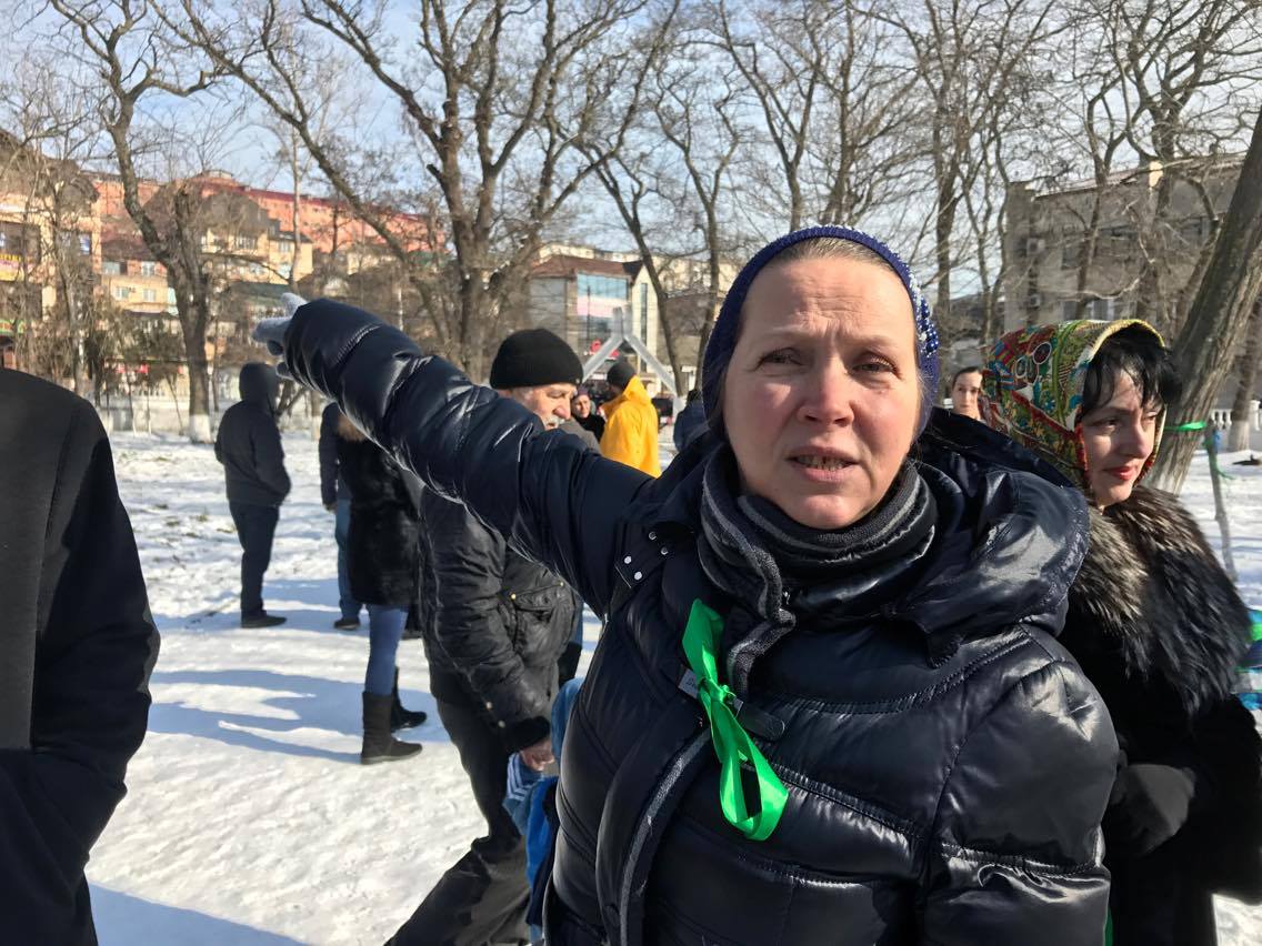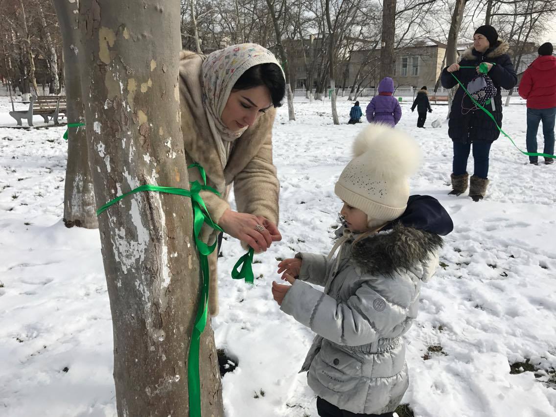 Некоторые участники акции пришли с детьми. Родители и дети в знак протеста против вырубки деревьев завязали на них зеленые ленты. “Плакаты и лозунги нам нельзя приносить, это уже считается “несанкционированным митингом”. Мы закон нарушать не собираемся, поэтому было решено провести такой небольшой флэш-моб с зелеными ленточками. Власти говорят, что мы кучка маргиналов, которые ничего не понимают или что у нас какие-то корыстные интересы. Спрашивают, почему мы молчали, когда в городе вырубались другие зеленые насаждения. Это не правда, что наши горожане не пытались защищать зеленые зоны от застройщиков, но силы их, к сожалению, оказывались неравными. Поэтому у многих нет веры в успех этих акций, потому люди не выходят, но мы будем продолжать, мы не собираемся отступать. Оставьте наш парк, он наш”, - заявила “Кавказ.Реалии” член инициативной группы противников вырубки деревьев в парке Ленинского комсомола, Мадина Ибрагимова.