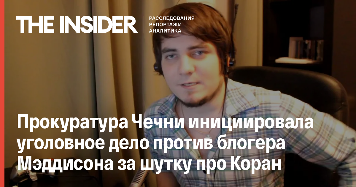 Прокуратура Чеченской Республики инициировала возбуждение уголовного дела против видеоблогера Ильи Давыдова, известного как Илья Мэддисон. Поводом стала шутка про Коран, озвученная Давыдовым в одном из его стендап-выступлений.