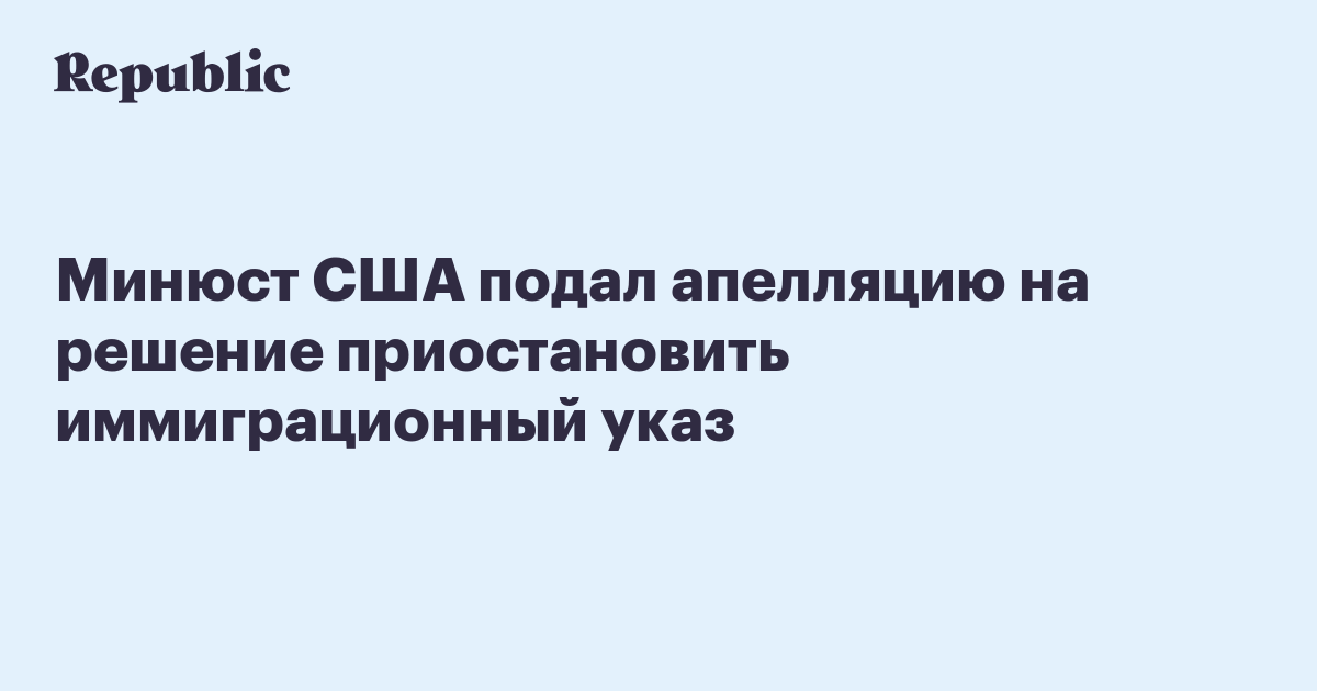 Минюст США подал апелляцию на решение приостановить иммиграционный указ