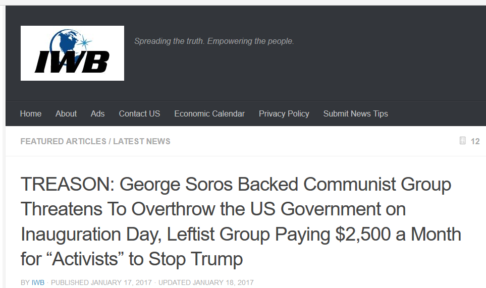 "ИЗМЕНА: ПОДДЕРЖИВАЕМАЯ ДЖОРДЖЕМ СОРОСОМ КОММУНИСТИЧЕСКАЯ ГРУППИРОВКА УГРОЖАЕТ СВЕРГНУТЬ ПРАВИТЕЛЬСТВО США В ДЕНЬ ИНАУГУРАЦИИ, ЛЕВАЦКАЯ ГРУППИРОВКА ПЛАТИТ "АКТИВИСТАМ" 2500 ДОЛЛАРОВ В МЕСЯЦ. ЧТОБЫ ОСТАНОВИТЬ ТРАМПА"