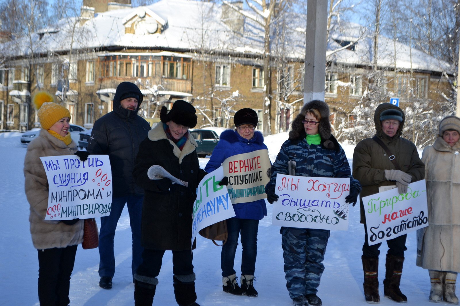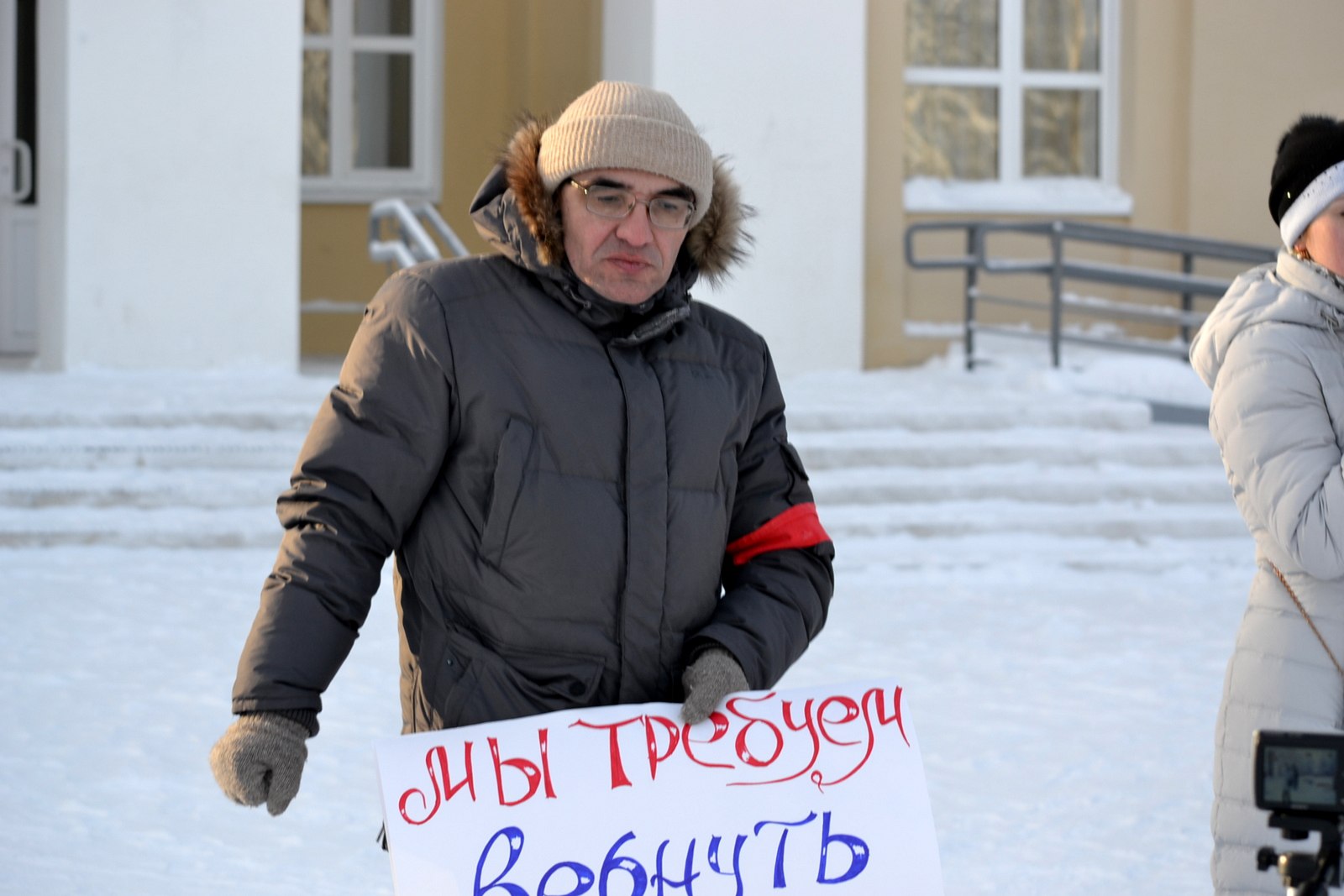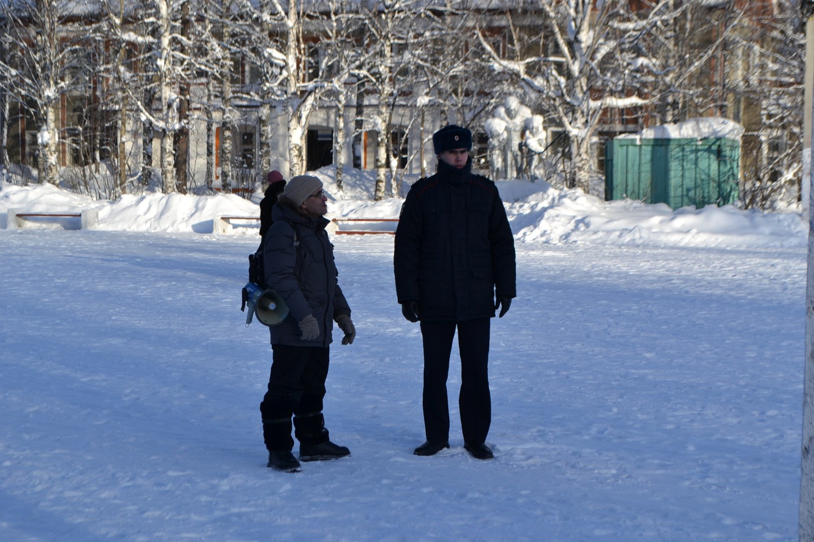 Но администрация поправила. 5 февраля было -24 °С, по ощущениям -34°С (я не знаю, почему так), это был самый морозный мой митинг.