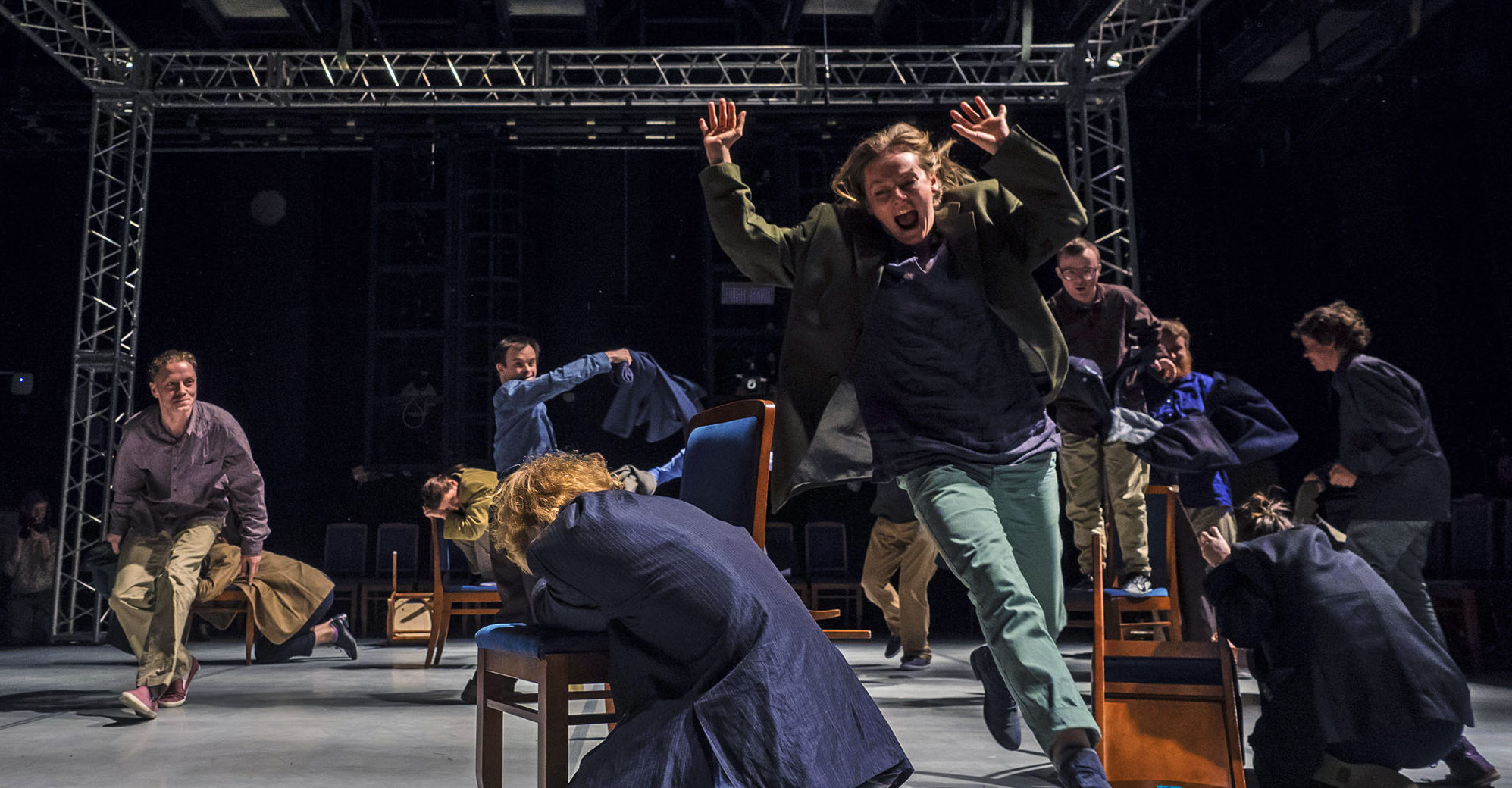 Участники премьерного спектакля «Язык птиц» режиссера Бориса ПавловичаФото: Руслан Шамуков/ТАСС — А все всегда проигрывают в итоге?