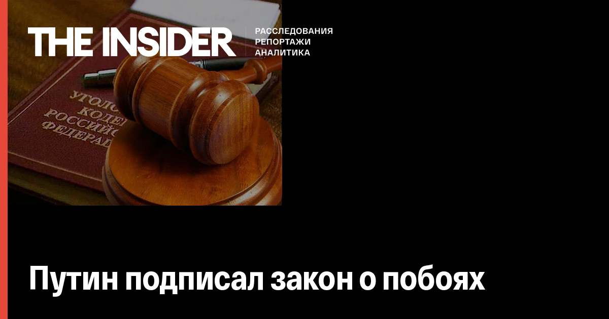 Президент Владимир Путин подписал закон о декриминализации побоев в семье, сообщает РИА «Новости». Ранее закон был одобрен Советом Федерации.