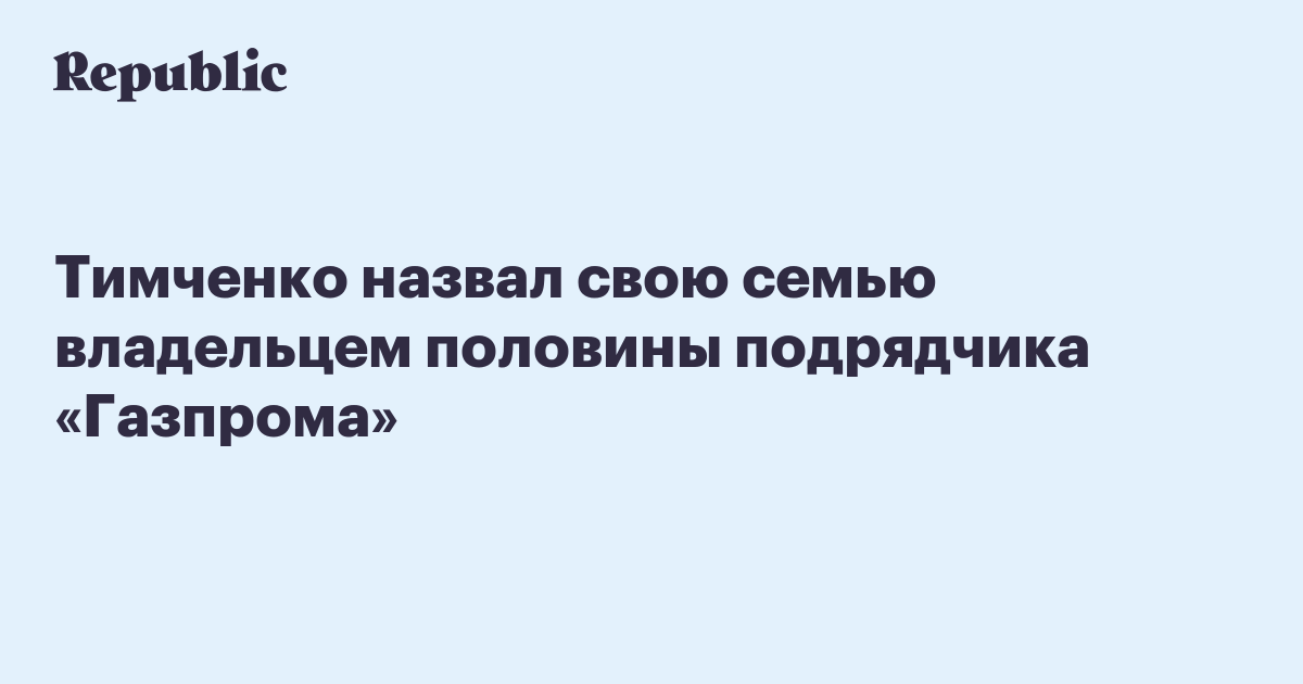 Тимченко назвал свою семью владельцем половины подрядчика «Газпрома»