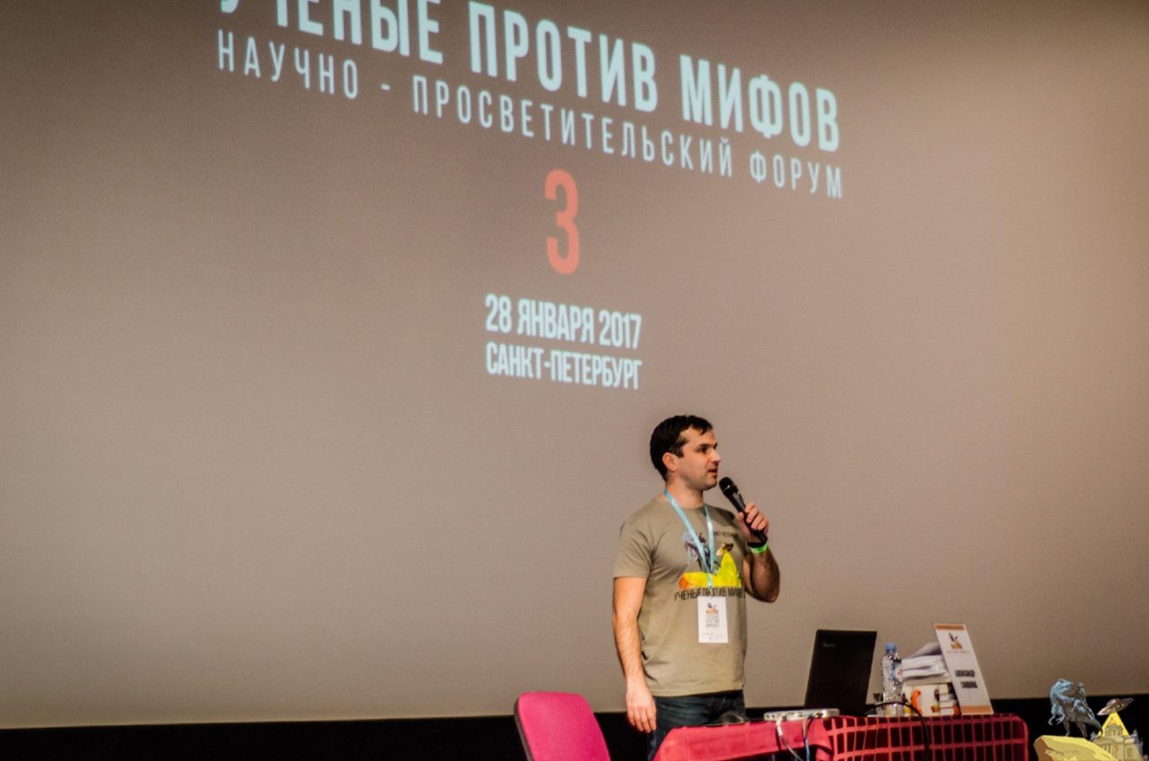 Кандидат биологических наук Станислав ДробышевскийФото: Никита Медведев От других сайтов о науке «Антропогенез» отличало желание его создателей как можно скорее выйти в офлайн. Сначала были камерные встречи молодых ученых в Дарвиновском музее, затем передвижные выставки, а к 2016 году родился формат массового просветительского форума «Ученые против мифов». Первые два форума с успехом прошли в Москве в 2016 году, третий впервые — в Санкт-Петербурге 28 января.