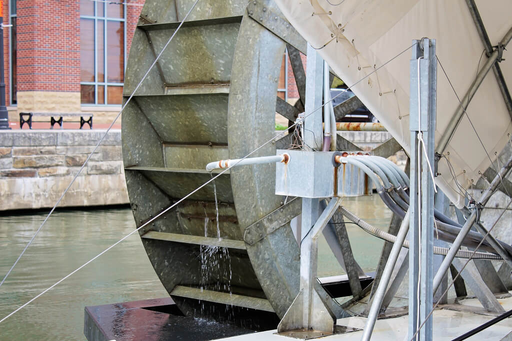 Mr Trash Wheel работает от «чистой» энергии – речная вода благодаря силе течения реки попадает в резервуар, из него подается на лопасти, закрепленные на колесе водяной мельницы.