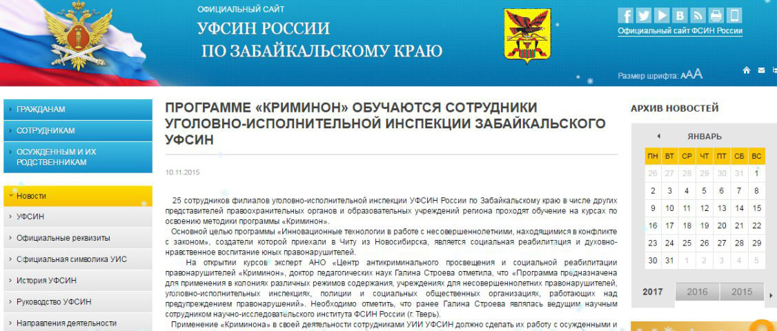 14:37 мск 9 февраля 2017 года. Уже после публикации этого текста «Медиазона» заметила, что благодарность специалистам центра «Криминон» оперативно удалена с сайта УФСИН по Забайкальскому краю. Благодарность сохранилась в кэше Google.