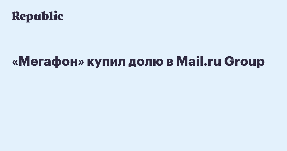 «Мегафон» закрыл сделку по покупке 63,8% голосующих акций или 15,2% уставного капитала Mail.ru Group. Об этом говорится в сообщении оператора.