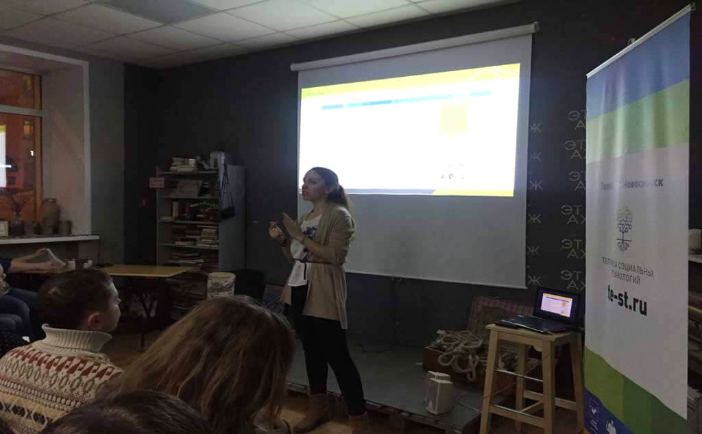 2 февраля 2017 года в Новосибирске прошел митап Теплицы социальных технологий на тему «Управление командой: инструменты работы с волонтерами». На встрече обсудили, как привлекать волонтеров к работе в социальных проектах и какими инструментами пользоваться для организации командной работы.
