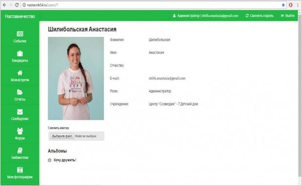 Для зарегистрированных участников создана внутренняя социальная сеть проекта. Каждый наставник имеет доступ к личному кабинету, где может составить удобный график встреч с ребенком, получить быстрые советы от психолога и быть в курсе событий проекта.