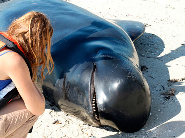 Черный дельфин. На севере Южного острова в Новой Зеландии более 400 черных дельфинов выбросились на берег, более 300 особей погибли. Службам спасения удалось вовремя вернуть в море около 100 животных. Причины такого поведения дельфинов выяснить не удалось.