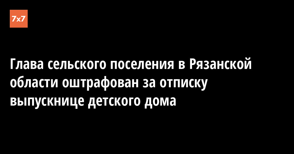Глава Ленинского сельского поселения Старожиловского района Рязанской области Юрий Старостин оштрафован за то, что не предоставил ответ по существу на заявление выпускницы детского дома. Об этом 10 февраля «7x7» сообщили в пресс-службе Рязанского правозащитного общества «Мемориал».
